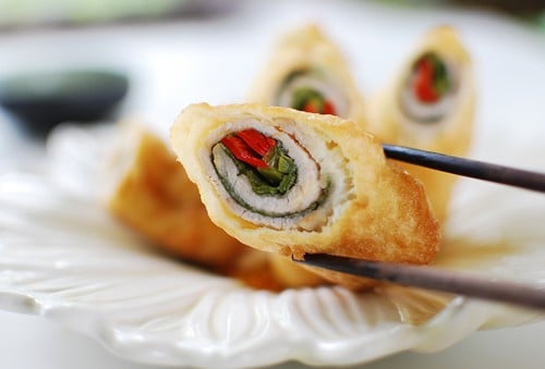 Deep fried in light batter, the result is a crispy outside layer and a burst of flavor inside. These little delights are great for parties as they can be prepared ahead of time and fried right before being served. When they are cut in half diagonally, the presentation of the pork rolls certainly has a “wow” factor. Whether you serve this as an appetizer or a side dish, it is sure to be a big crowd pleaser!