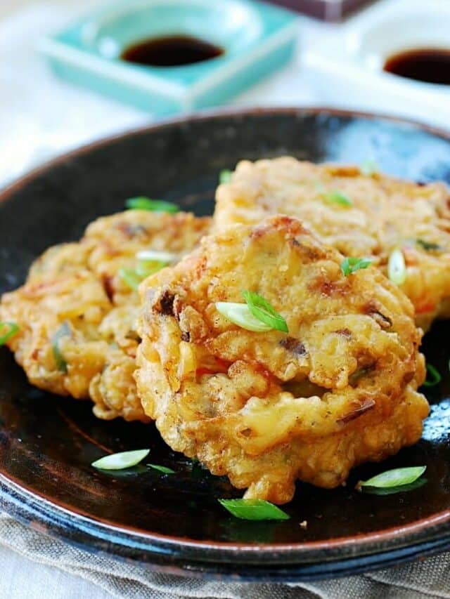 The restaurant’s version was made with the typical savory pancake batter like the one used for pajeon, loaded with oysters, and fried to perfection! I’ve recreated it here for you!