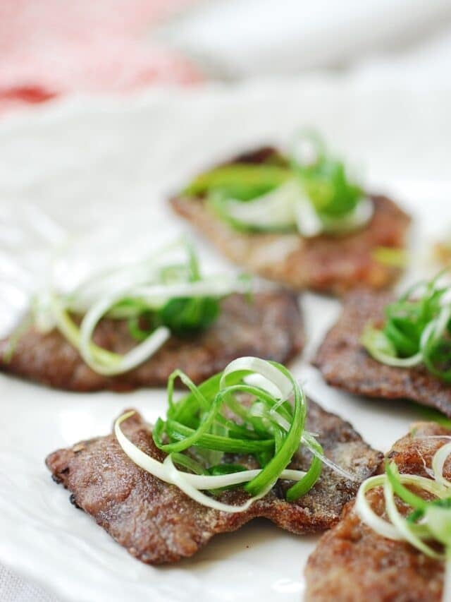 Dredge both sides of the beef slice in sweet rice flour, one piece at a time. Let it stand for a few minutes until the flour absorbs the marinade. Then, dredge again in the sweet rice flour to create a nice coating.